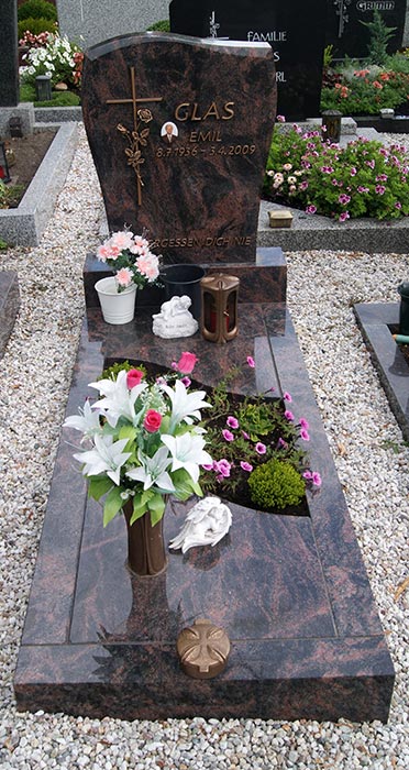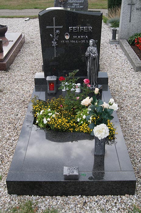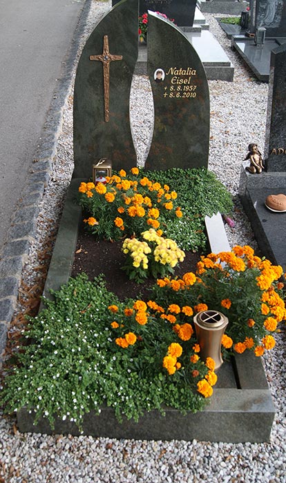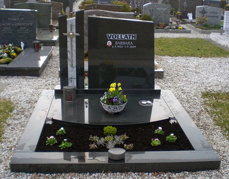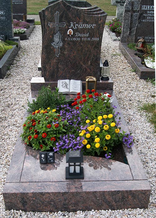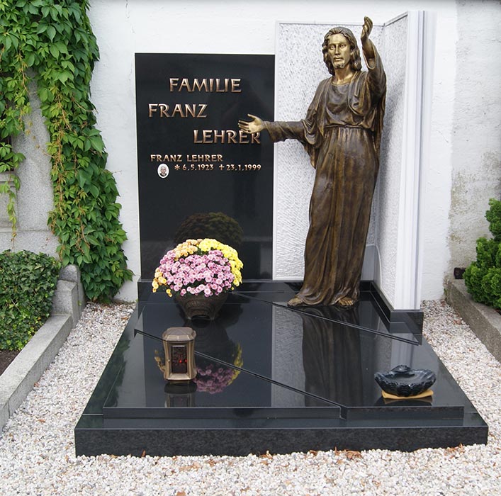 Hier sehen Sie einige Beispiele für die Gestaltung von Grabdenkmalen, gerne gehen wir aber auch auf Ihre individuellen Wünsche ein. In unserem Sortiment finden Sie natürlich auch eine große Auswahl an Grabschmuck wie Blumenschalen, Laternen, Weihwasserkessel, Vasen usw. Sie erhalten bei uns außerdem Steinreinigungs- und Pflegemittel, Grablichter, Weihwasserpinsel und vieles mehr.